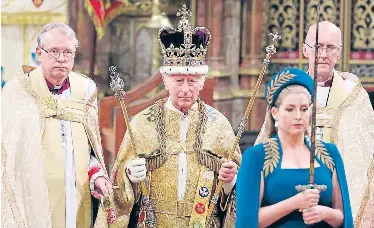 En la suntuosa Abadía de Westminster, en el centro de Londres, el arzobispo de Canterbury, Justin Welby, líder espiritual de la Iglesia de Inglaterra, colocó la corona de San Eduardo sobre la cabeza del monarca, de 74 años. No había sido llevada desde la coronación en 1953 de su madre, fallecida en septiembre.