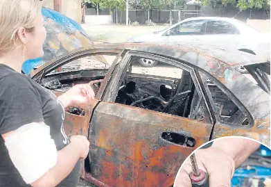 Del carro solo queda la hojalata calcinada en el estacionamiento de la línea de taxi.