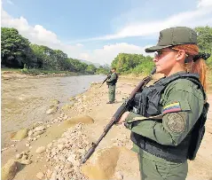 Soldados de la Fuerza Armada Nacional Bolivariana (FANB) desplegados a orillas del río Táchira, que sirve como frontera entre Venezuela y Colombia.