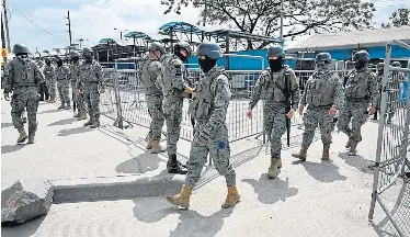 Militares protegen el exterior de la prisión Guayas 1 un día después de que una pelea entre bandas rivales dejó varios reclusos muertos en Guayaquil. /